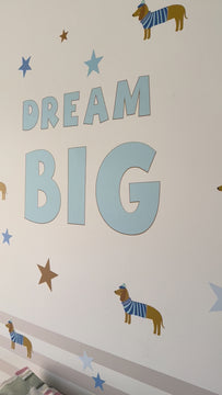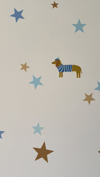 Say hello to Benji, our stylish little dachshund with the Coolest Blue striped jumper! These Benji Sausage Dog Wall Decals bring charm, fun and personality to any child’s room. Perfect for puppy lovers and playful interiors alike.